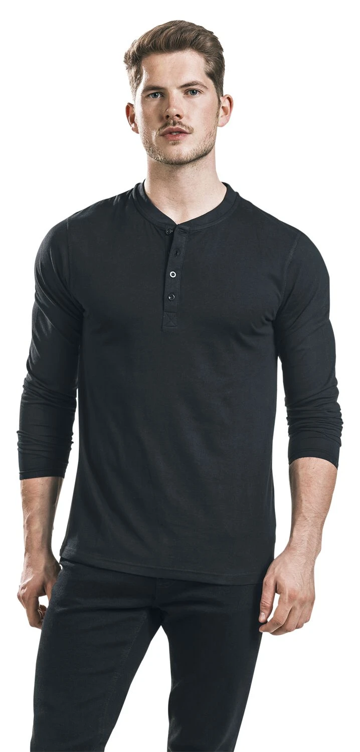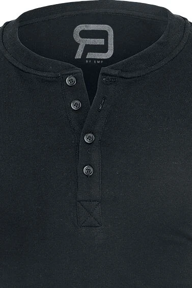 – Crew neck with button placket