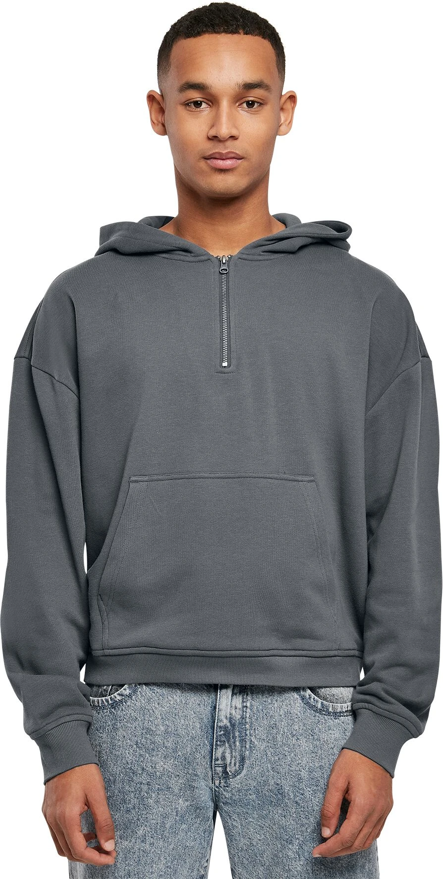 “Boxy Zip Hoodie” Hooded Sweater Charcoal By Urban Classics