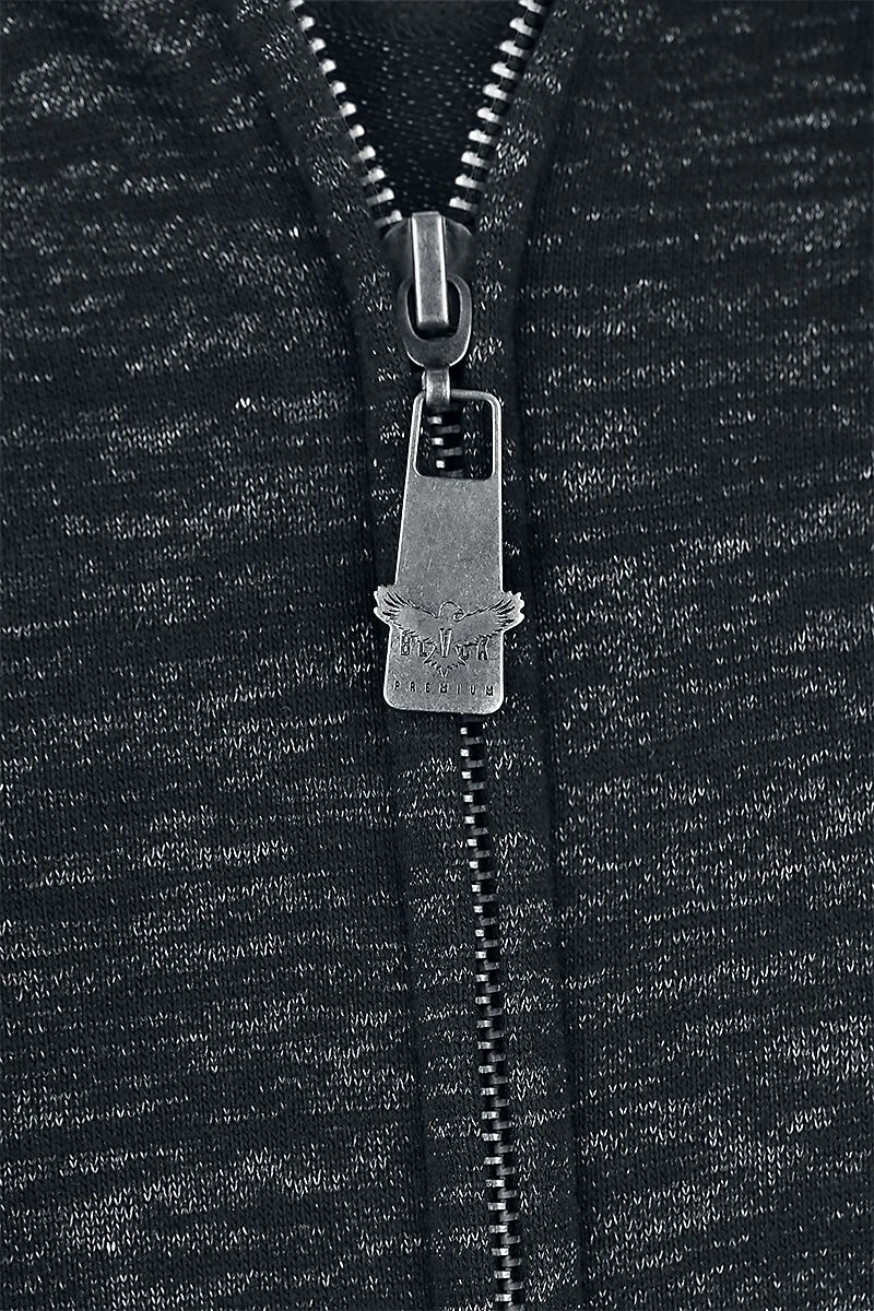 You can simply wear the melange Hoodie jacket of Black Premium by EMP at any occasion. The hooded jacket combines the characteristic style of a classic hoodie with kangaroo pocket, hood with drawstring and zipper with a special melange look and a label above the hem.