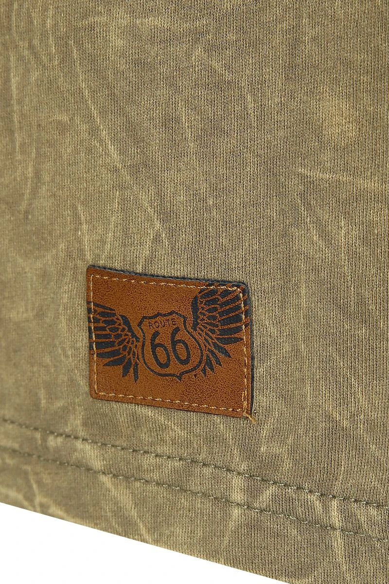 “Rock Rebel X Route 66 – Green T-Shirt With Wash And Print” T-Shirt Olive By Rock Rebel By EMP